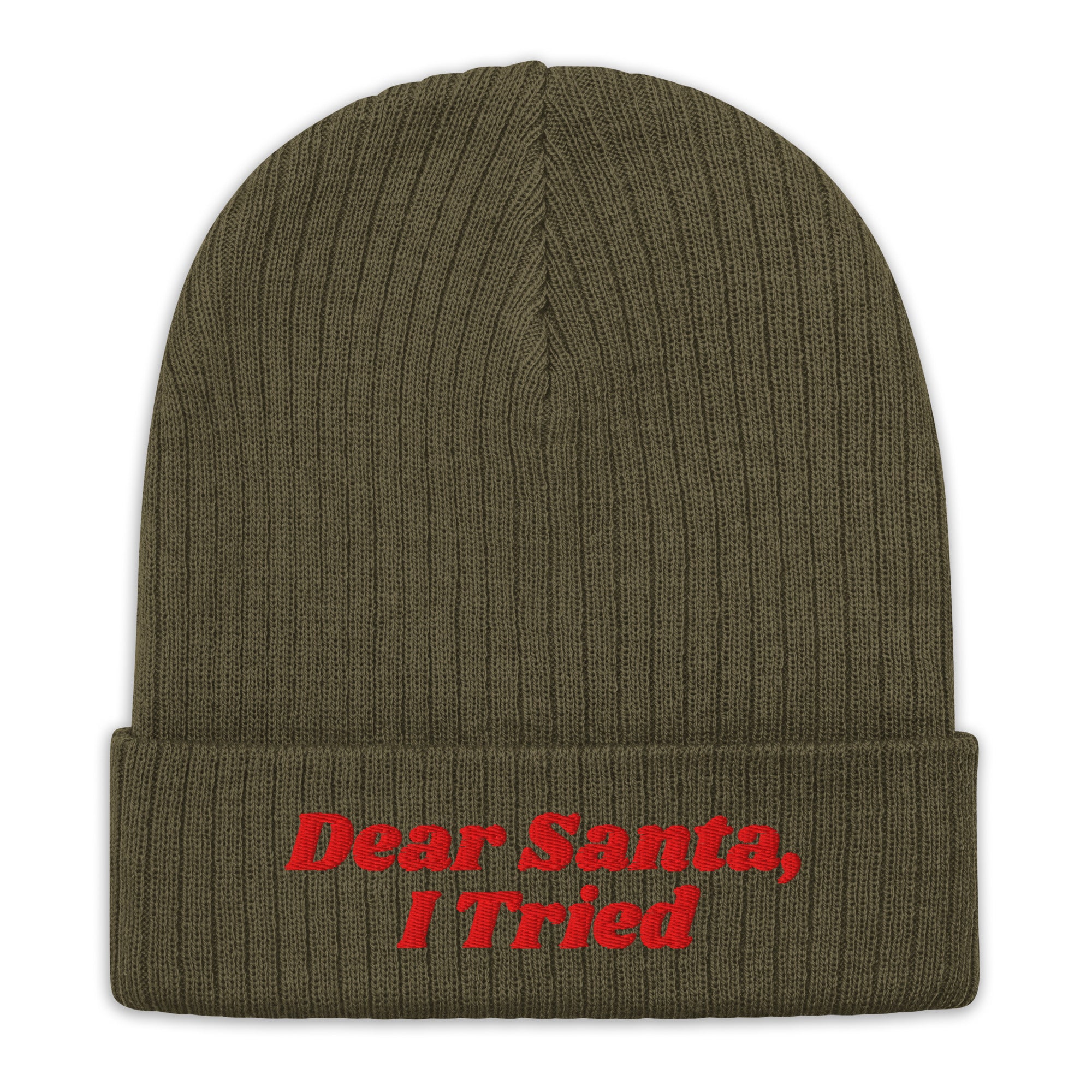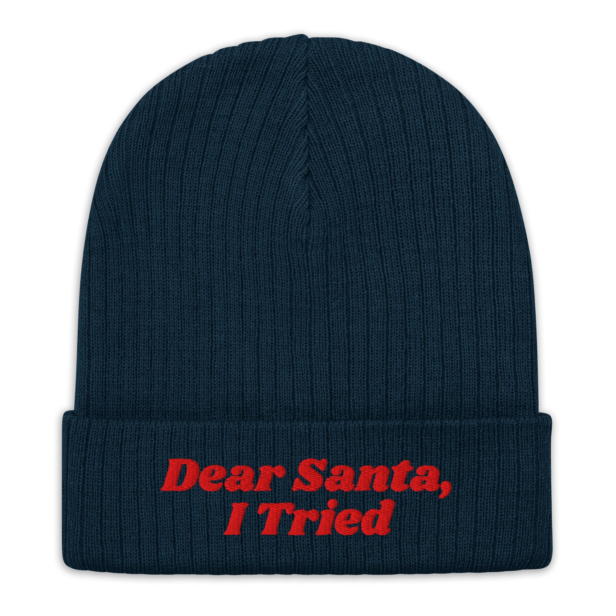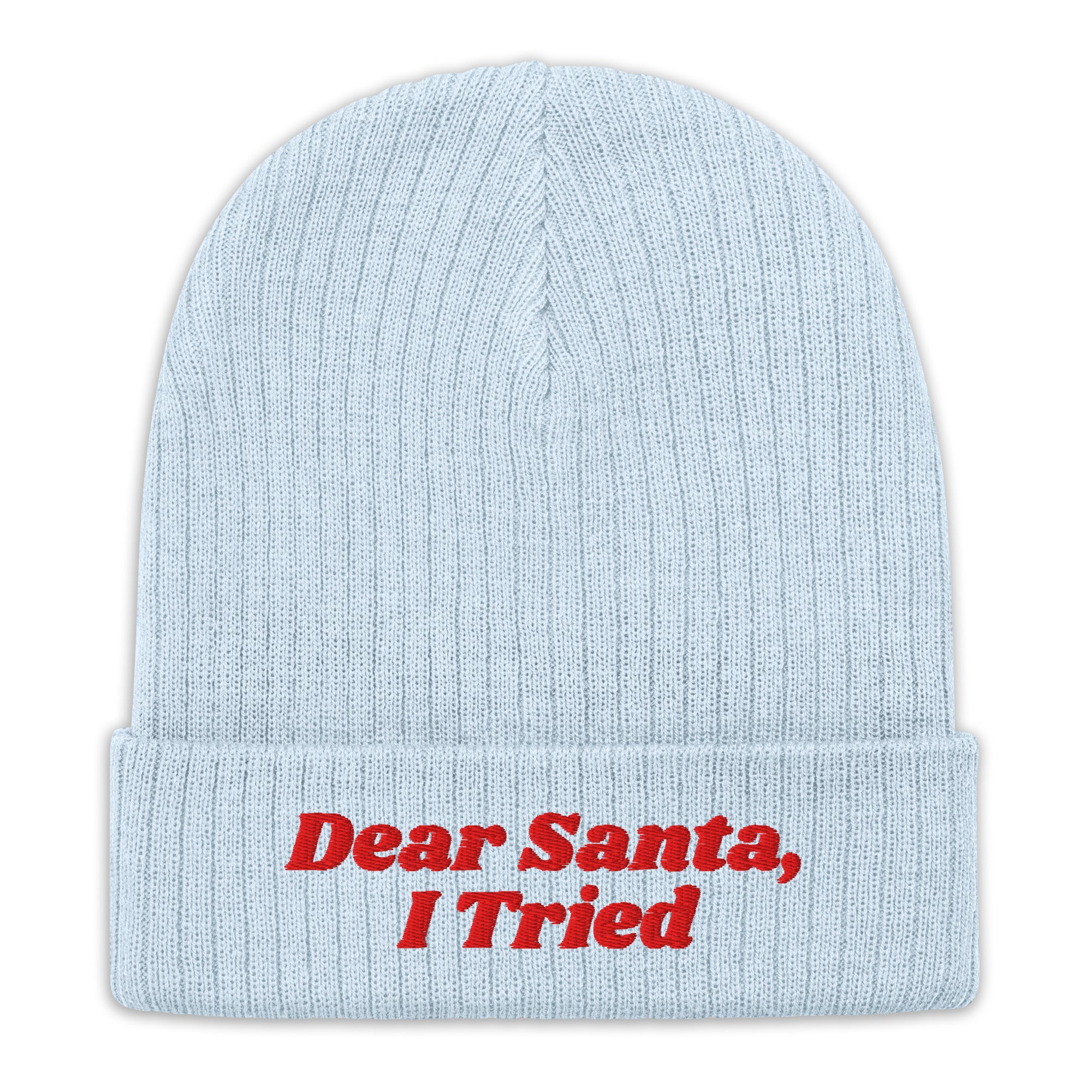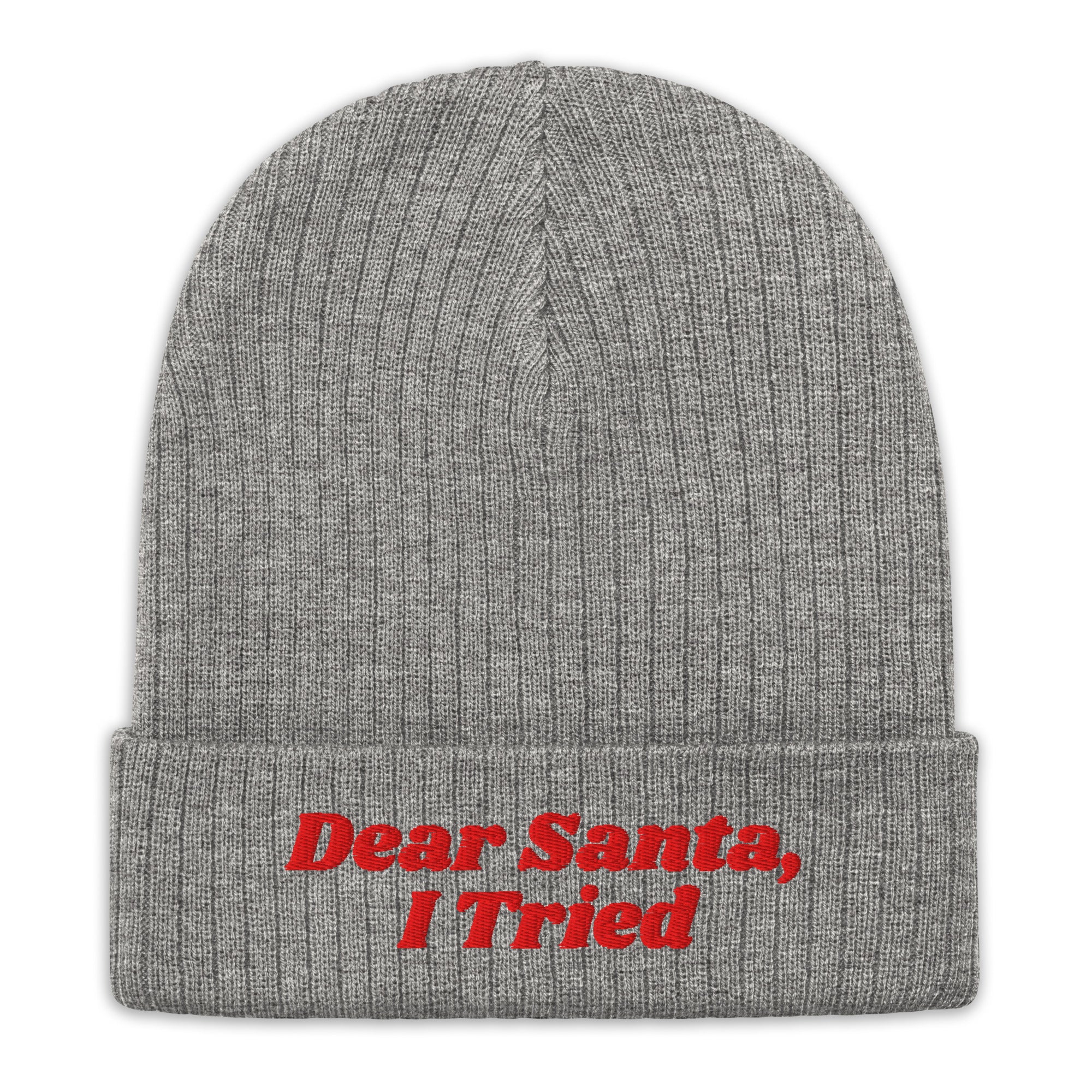 Don't stress the naughty list—just explain yourself! This cozy beanie features the hilarious, relatable message: "Dear Santa, I Tried." It's the perfect, playful way to embrace your imperfections this Christmas.