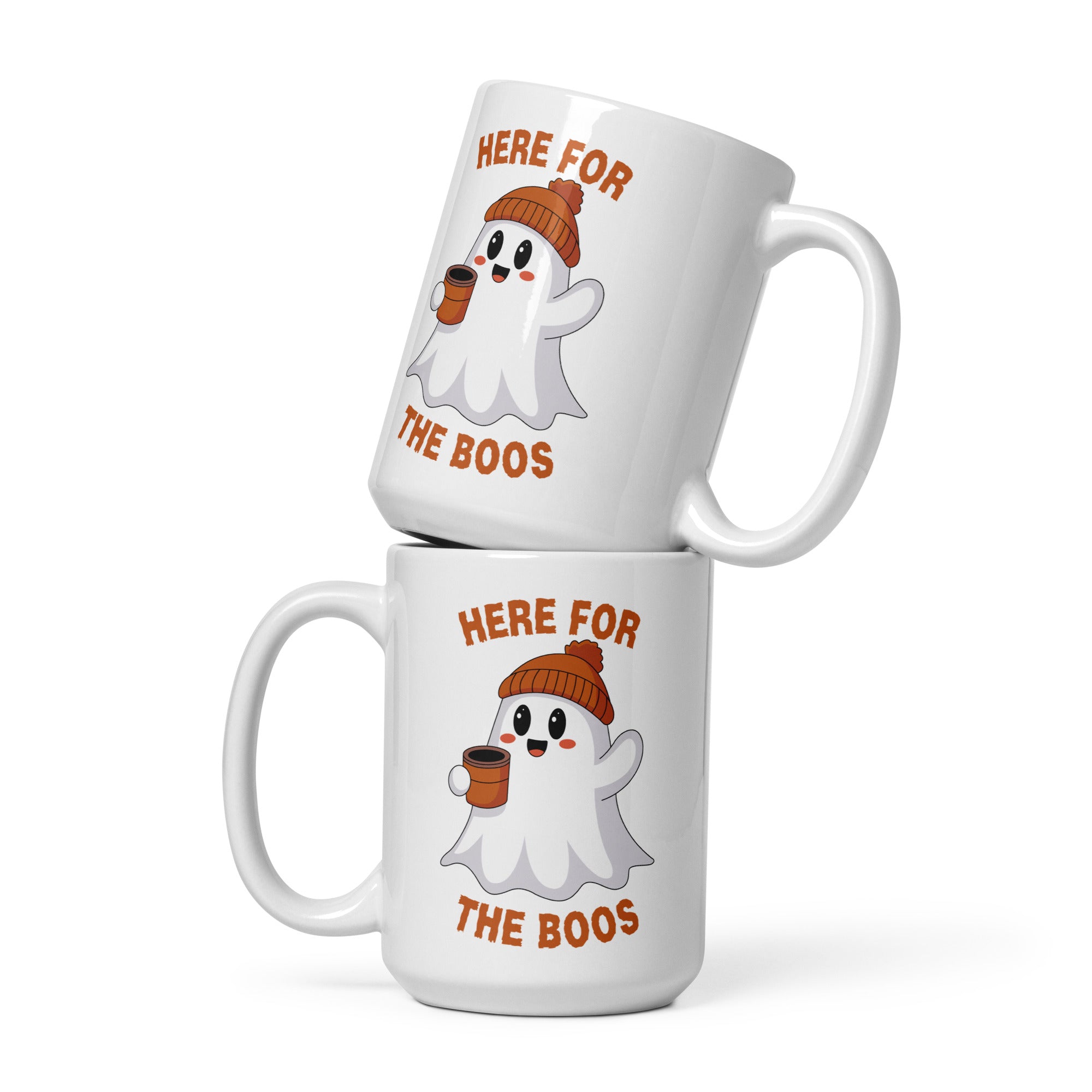 Here for the Boos Halloween White glossy mug