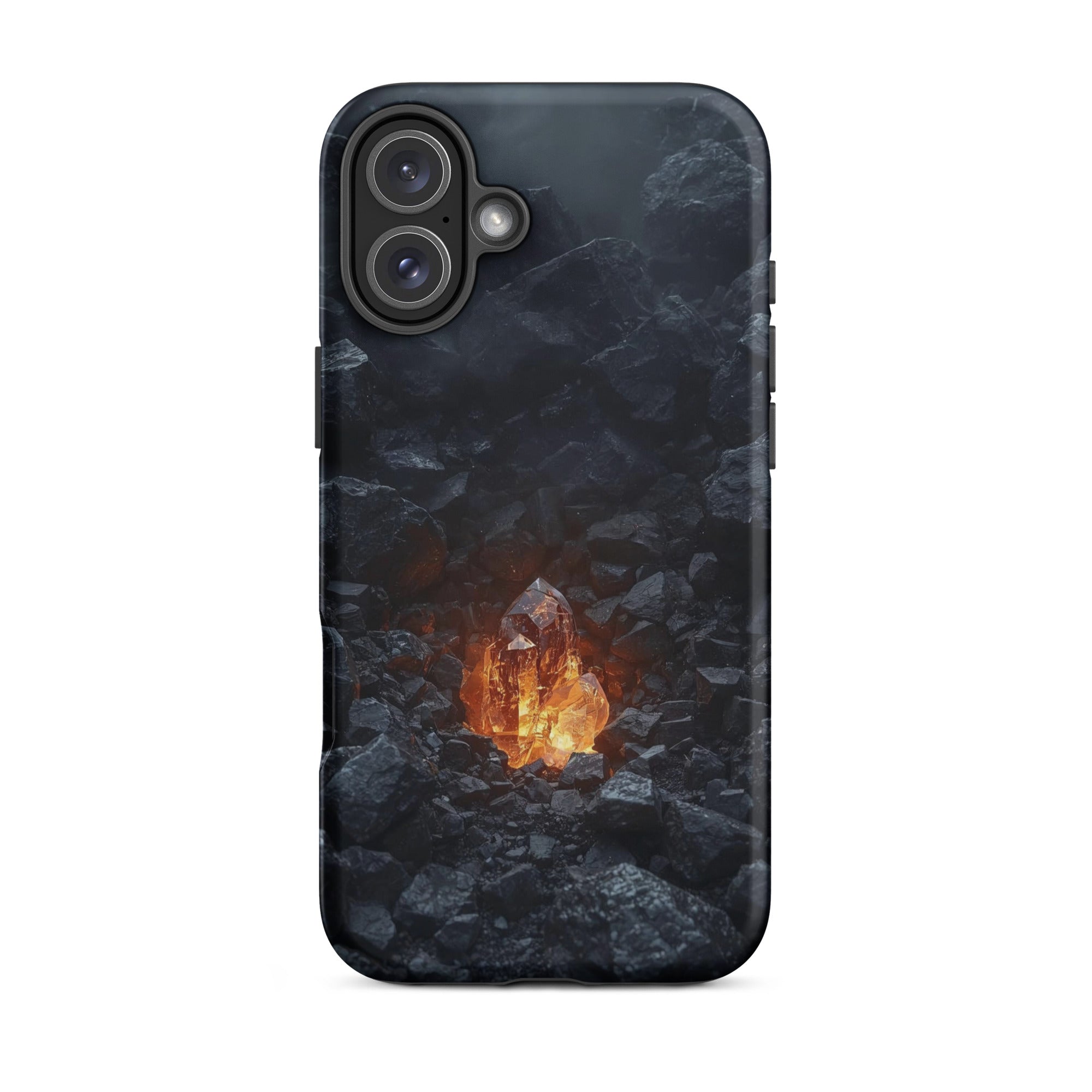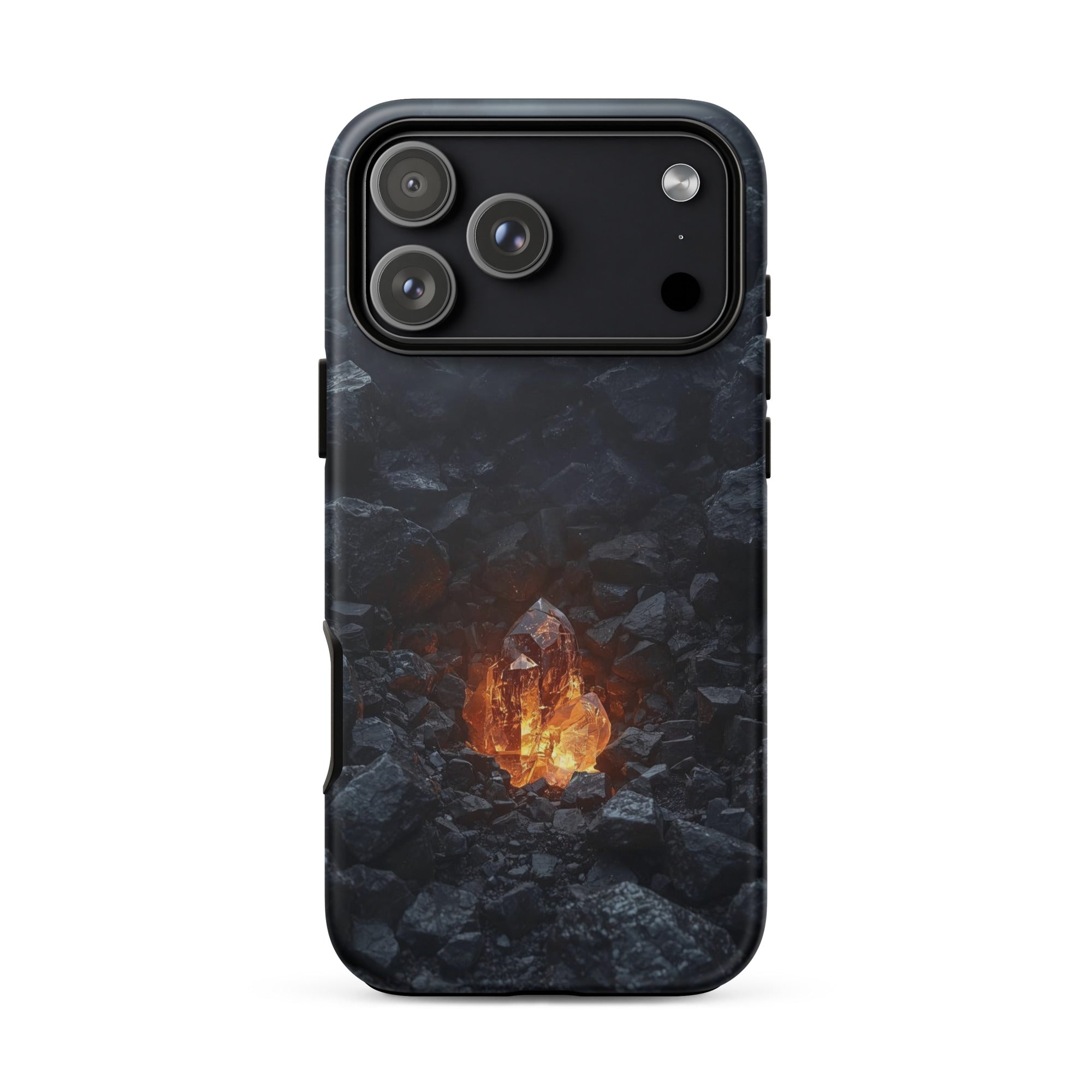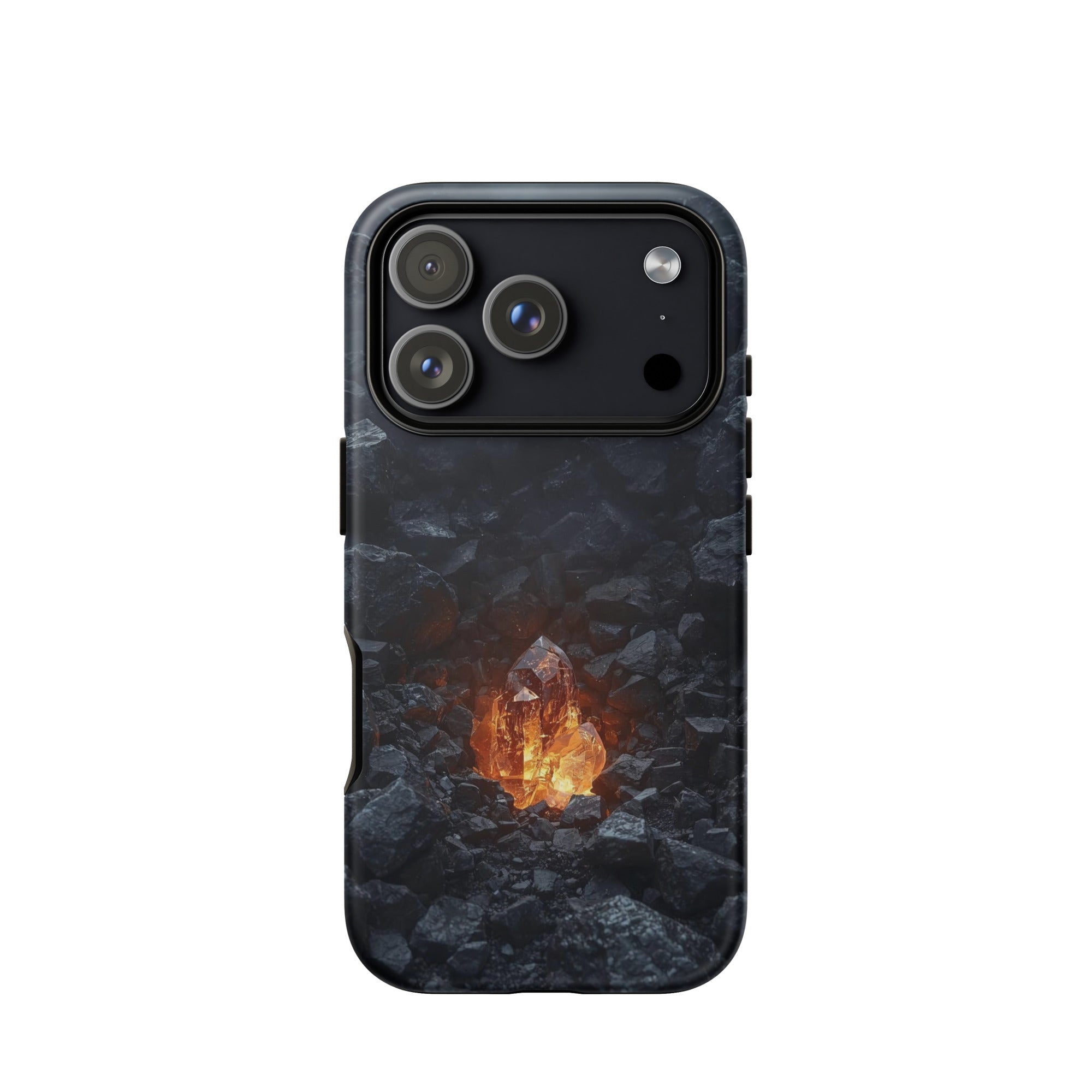 Bring the warmth of a crackling fire wherever you go. This hyper-realistic design blends the rough, charcoal texture of stone with a smooth, glowing glass core. It’s the ultimate cozy accessory for those who find peace in the heat of the moment.