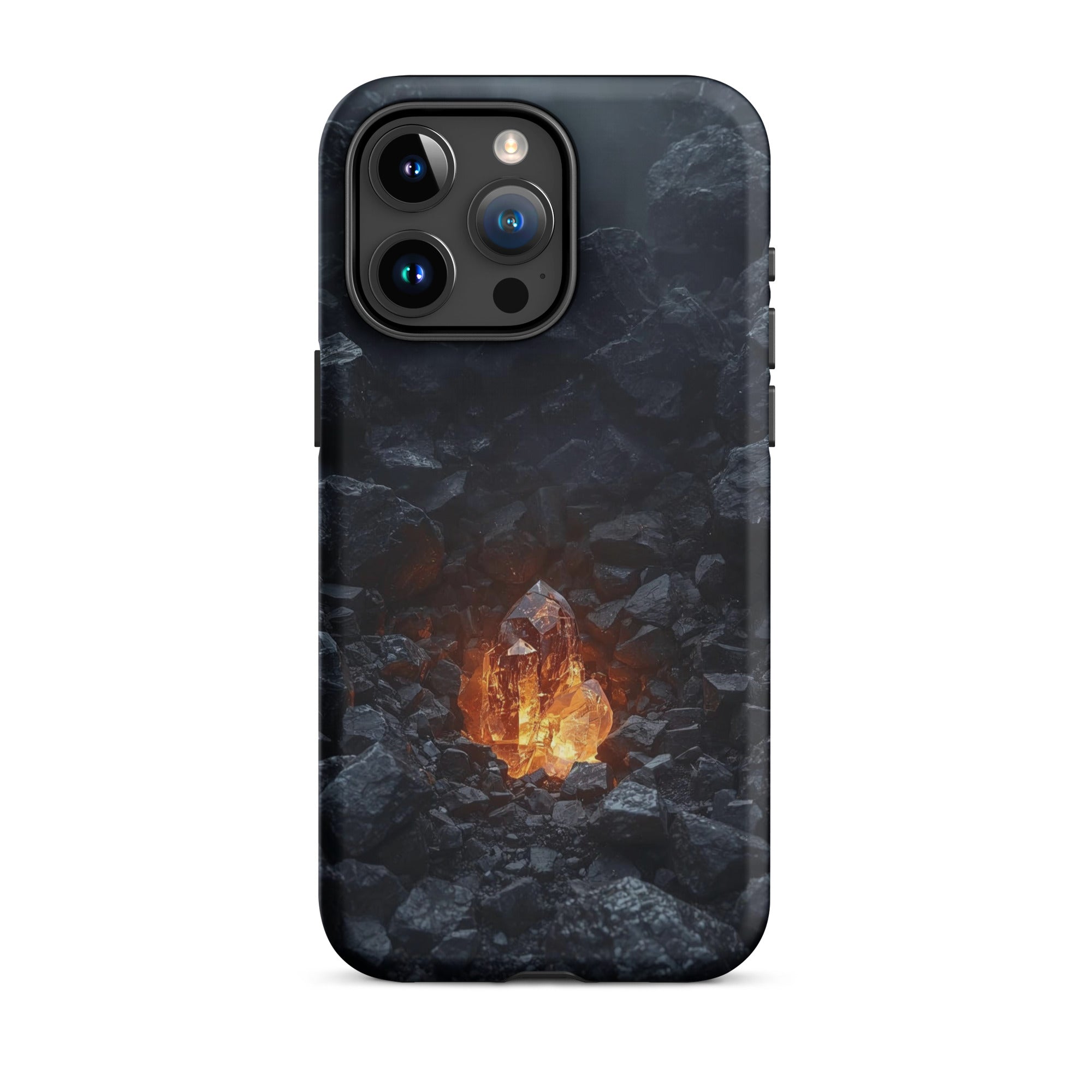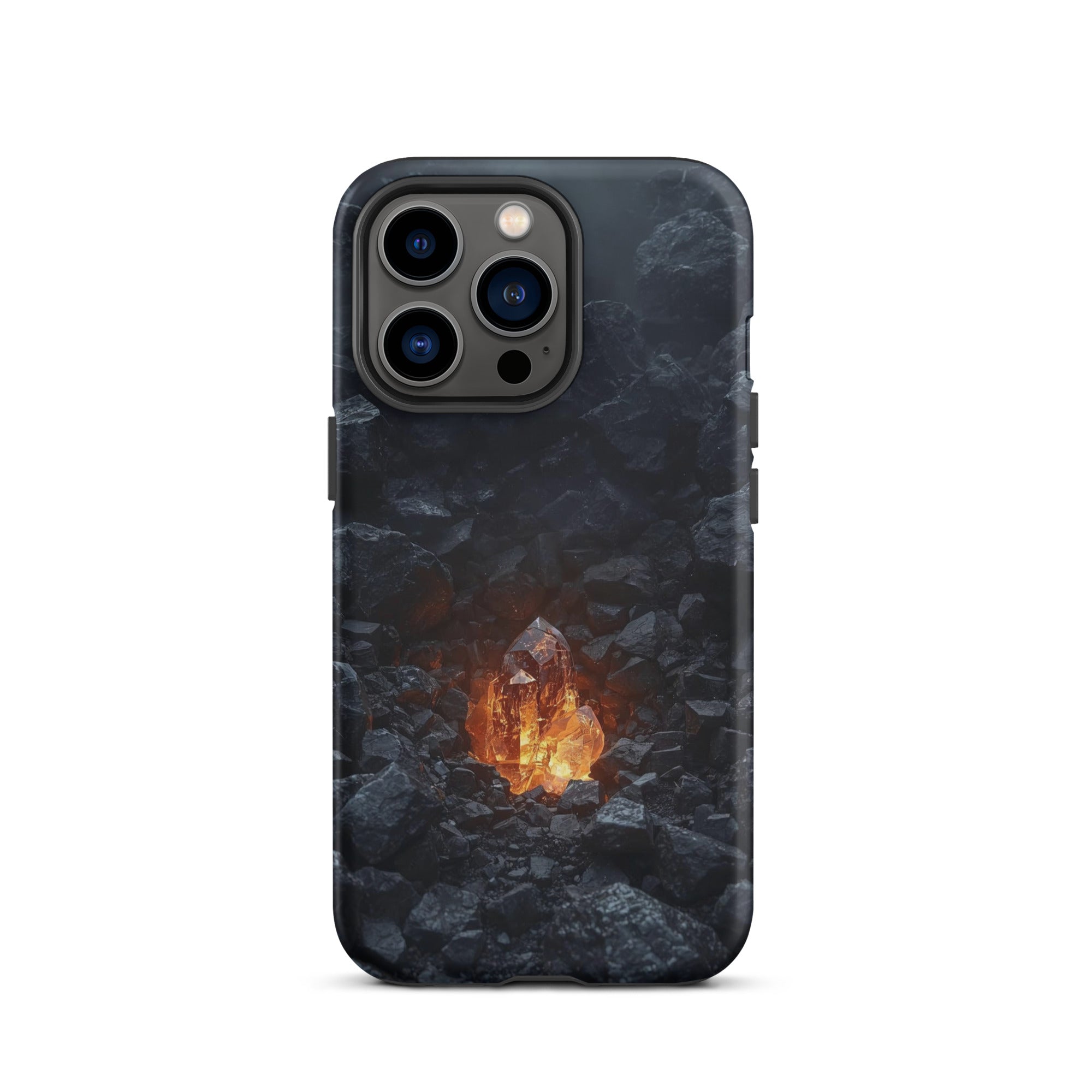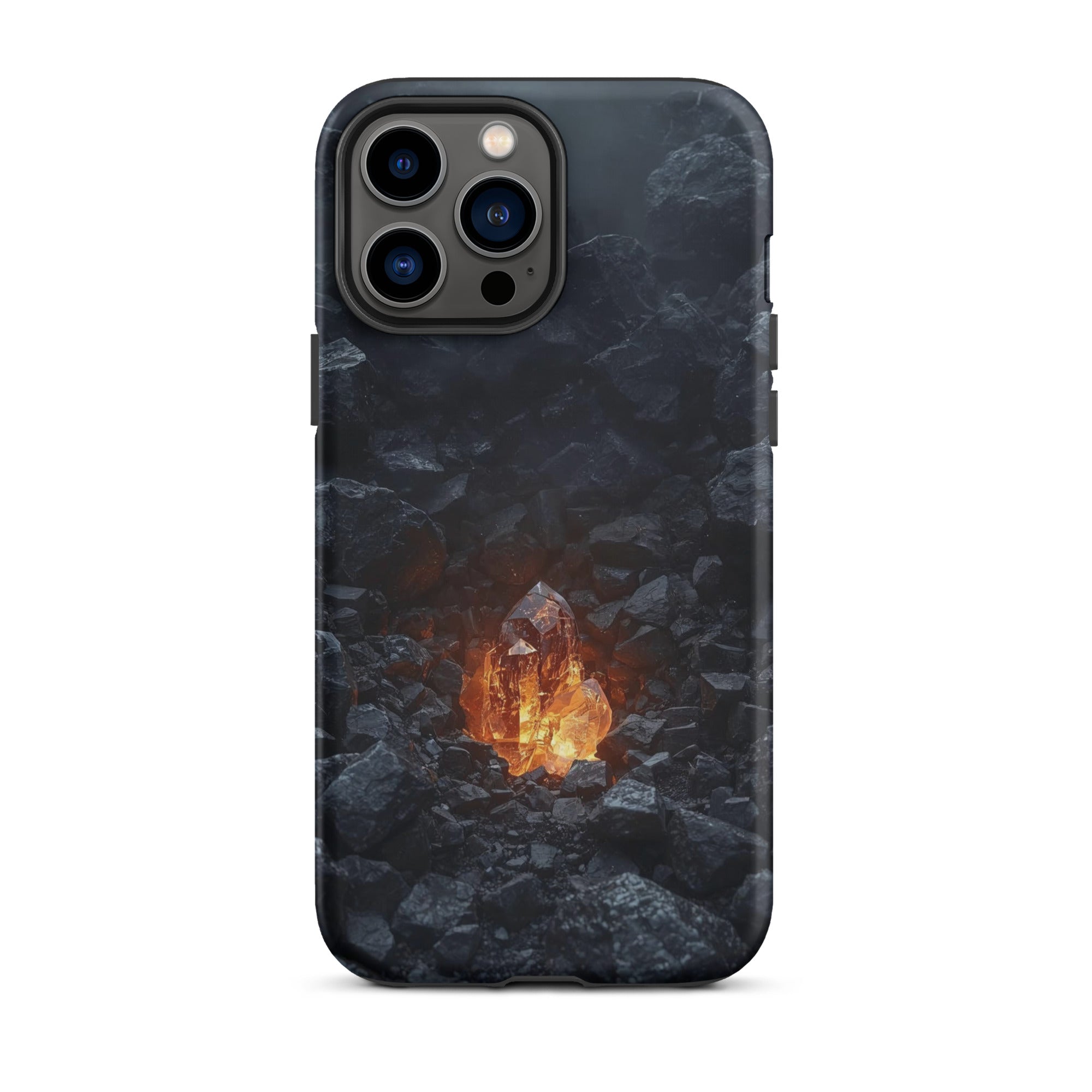 Bring the warmth of a crackling fire wherever you go. This hyper-realistic design blends the rough, charcoal texture of stone with a smooth, glowing glass core. It’s the ultimate cozy accessory for those who find peace in the heat of the moment.
