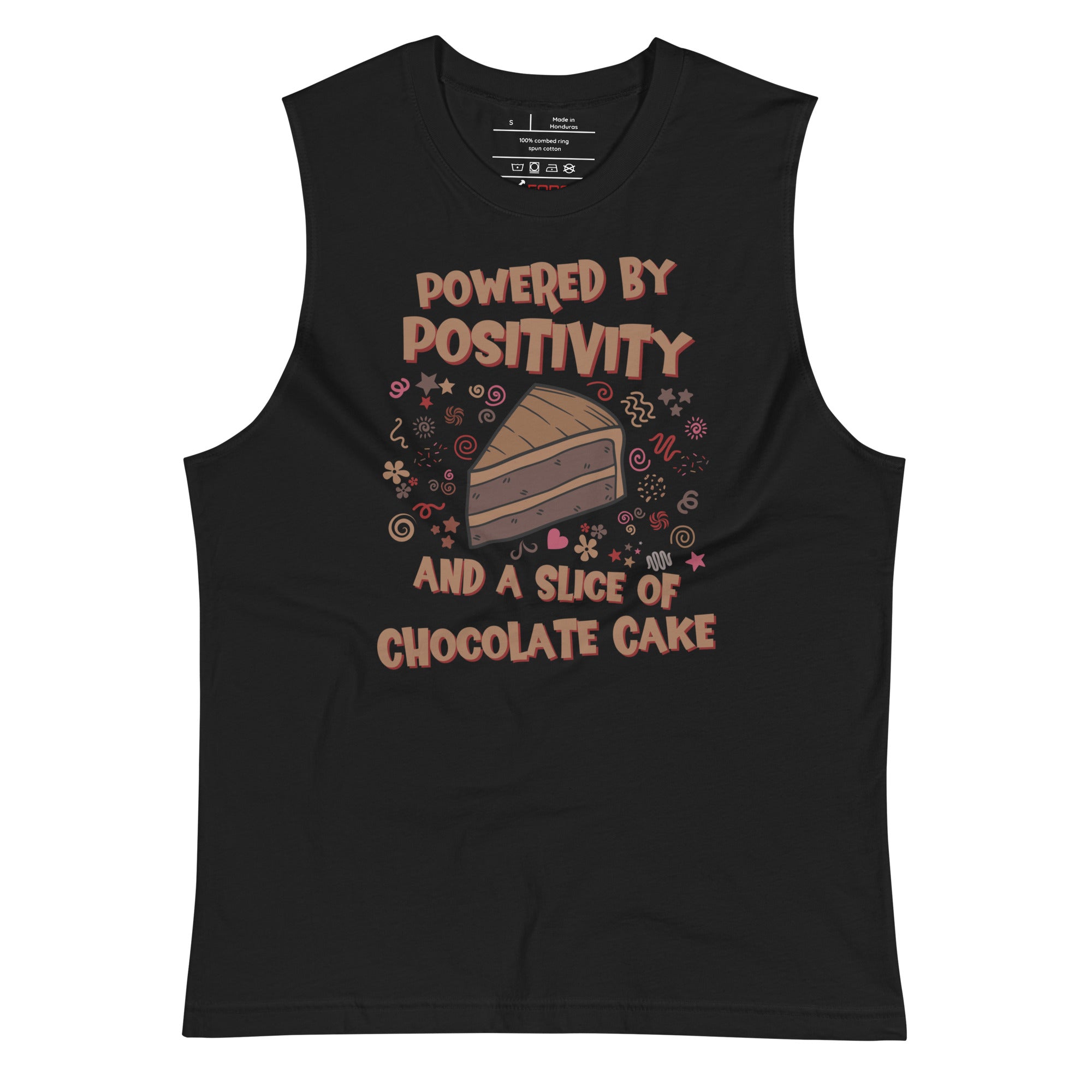 This comfortable muscle shirt gives the concept of motivation a witty, indulgent twist. It's the declaration of unwavering commitment to happiness delivered with a classic, humorous attitude.