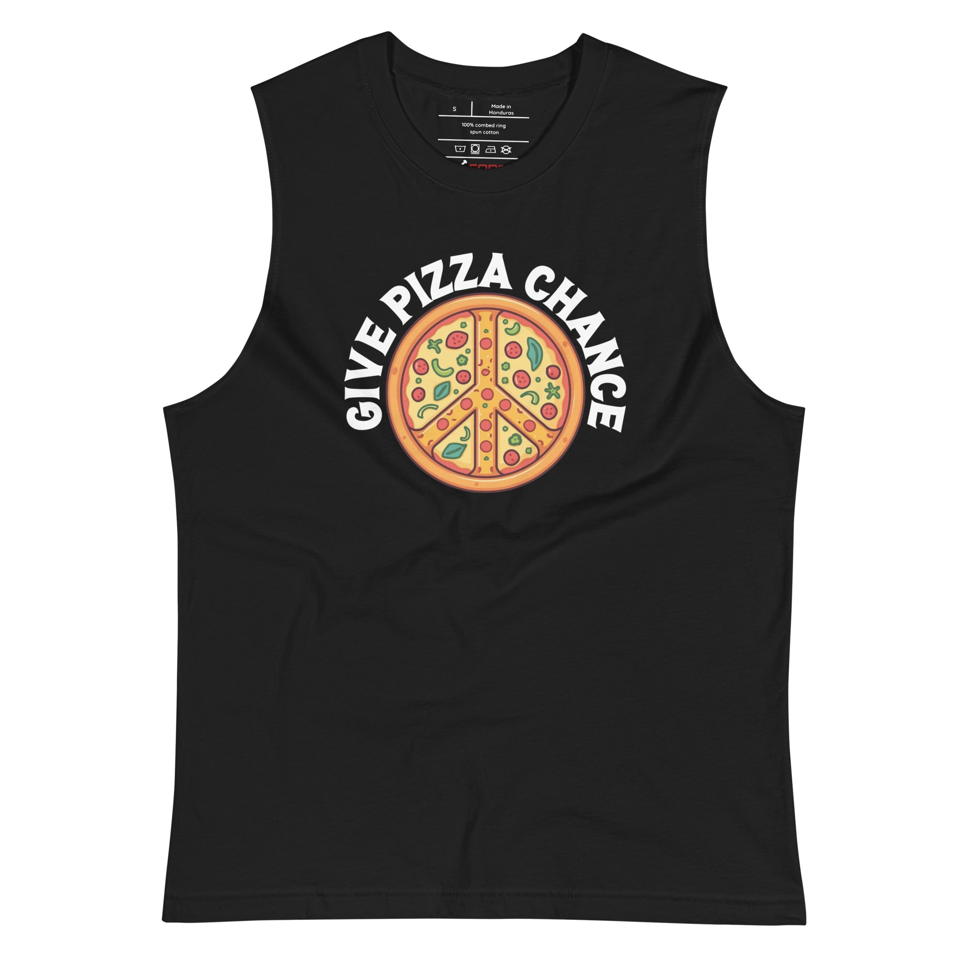Get ready to earn groans and giggles! This comfortable muscle shirt is your playful way to flex your witty muscles while showing off your unyielding devotion to the round delicacy.