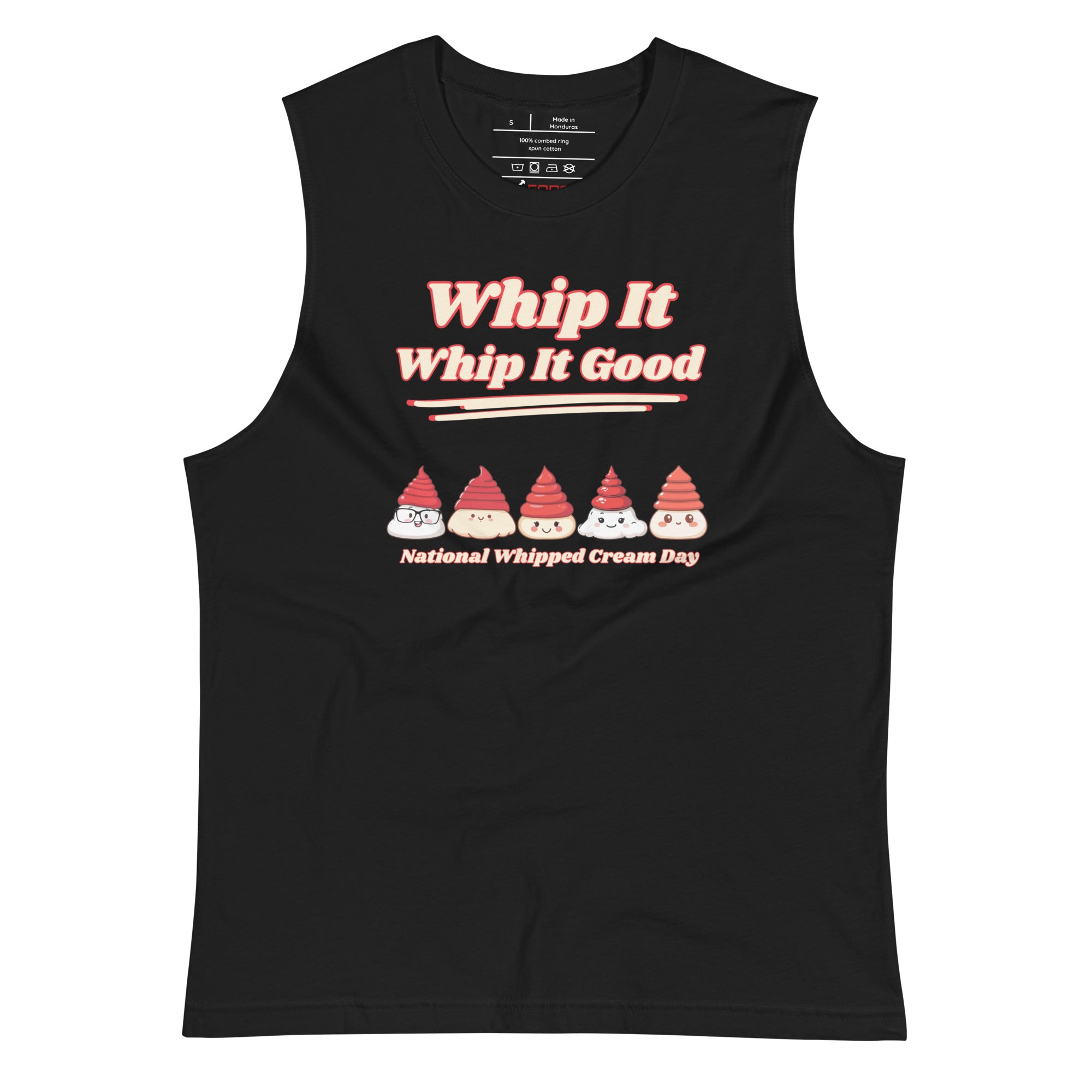 This comfortable muscle shirt gives the traditional holiday celebration a retro, new-wave twist. It's the declaration of unwavering commitment to fun delivered with a classic, witty attitude.