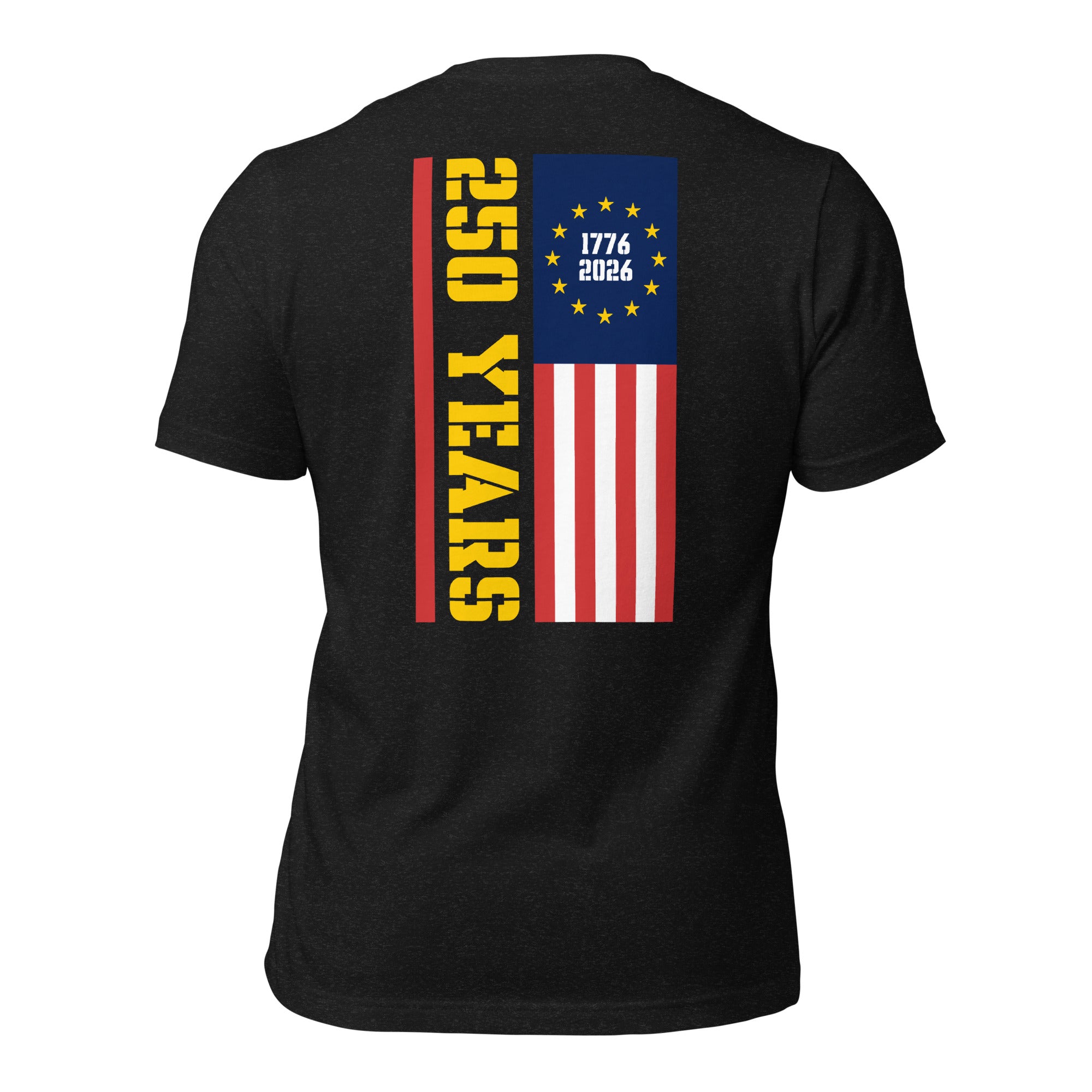 A Unique Milestone Marker: Commemorate a quarter-millennium of American history with this standout shirt. Featuring the bold '250 Years' text and the pivotal dates 1776 to 2026 cleverly woven into the flag's star field, it's a powerful and detailed tribute to our nation's enduring journey.