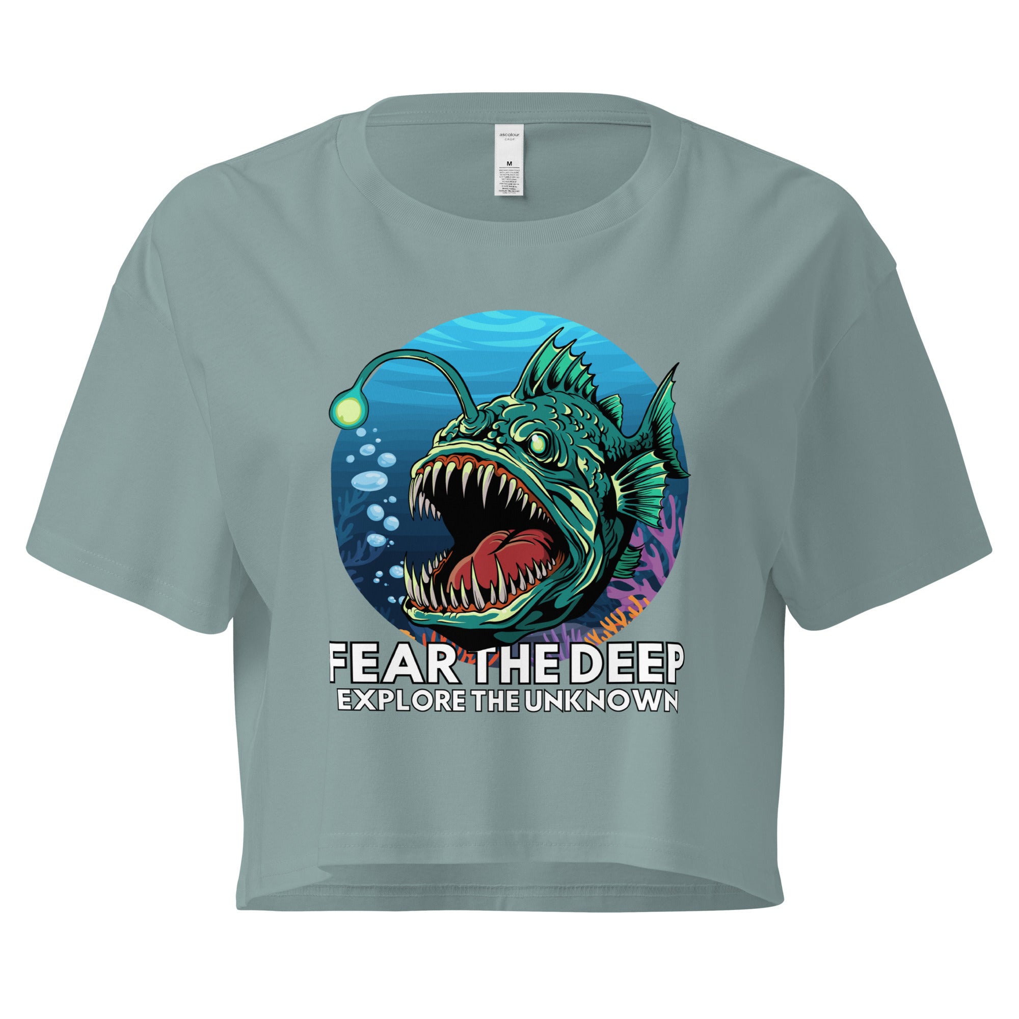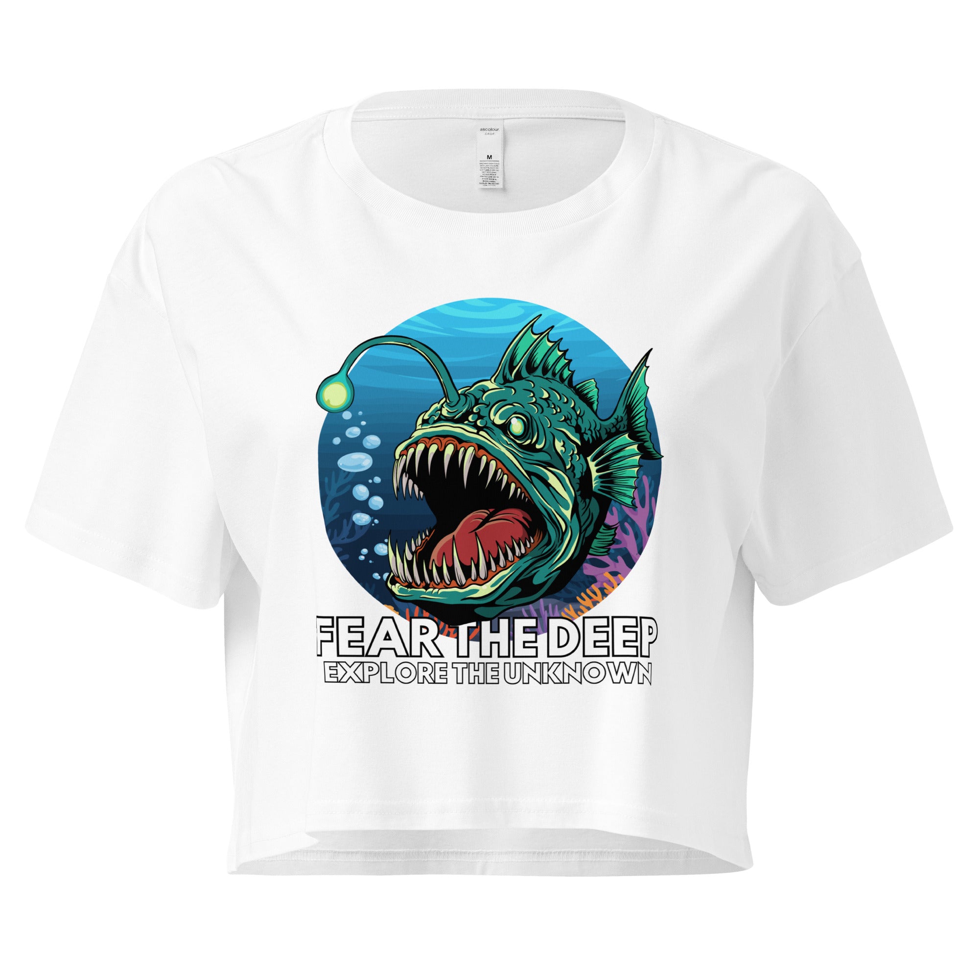 Short on fabric, long on attitude. This crop top is for the deep-sea diva who knows that "exploring the unknown" is best done with a little bit of flair.